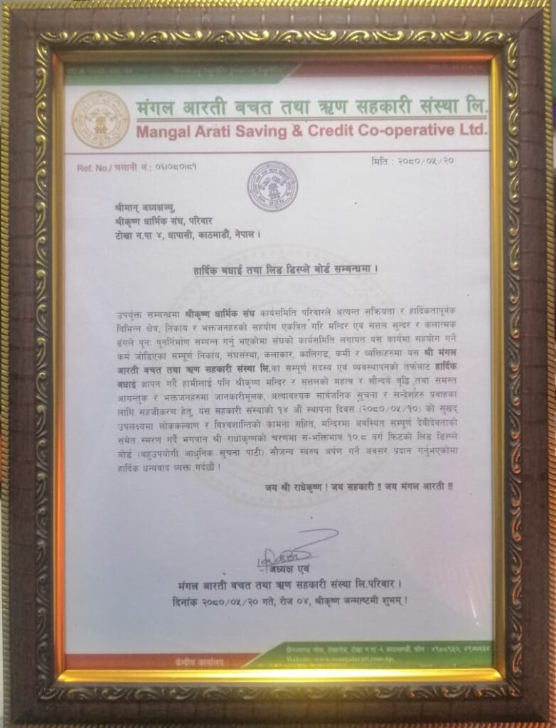 श्री कृष्ण धार्मिक संघका कार्यक्रम