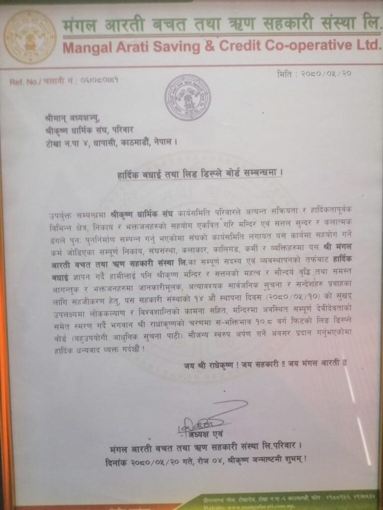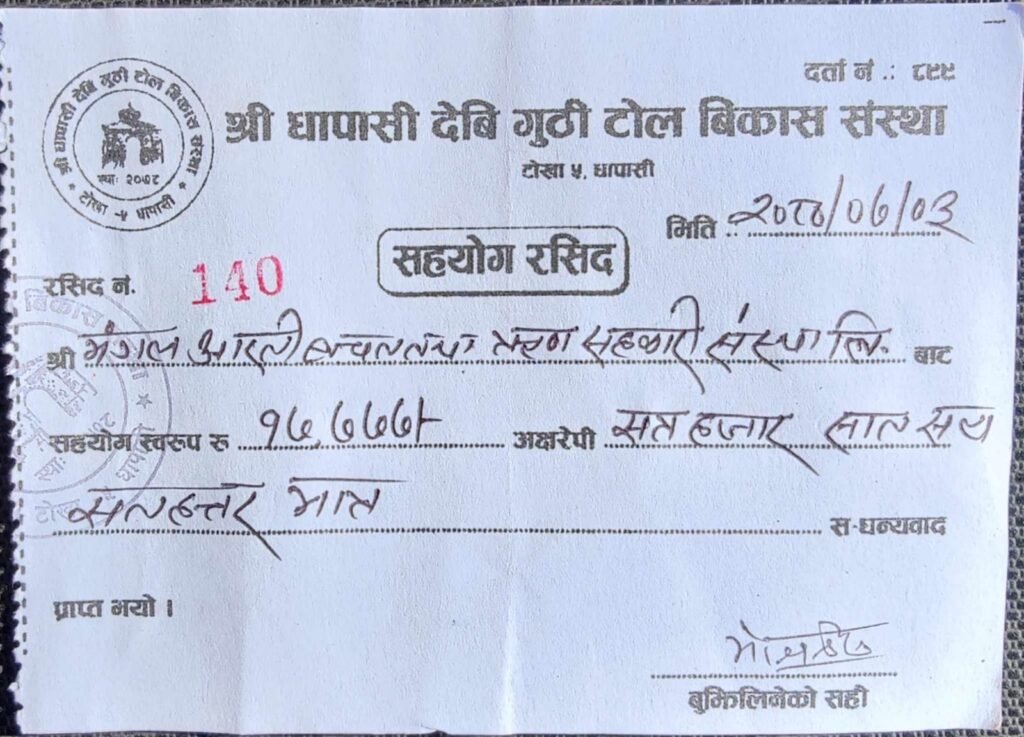 Supporting for renovation of shree Dhapasi Devi Temple