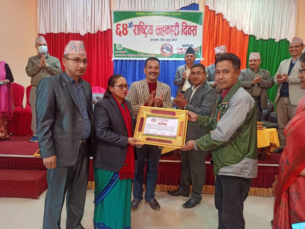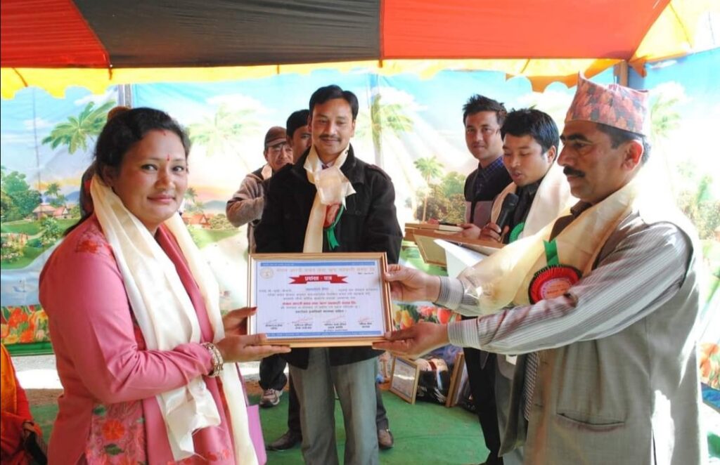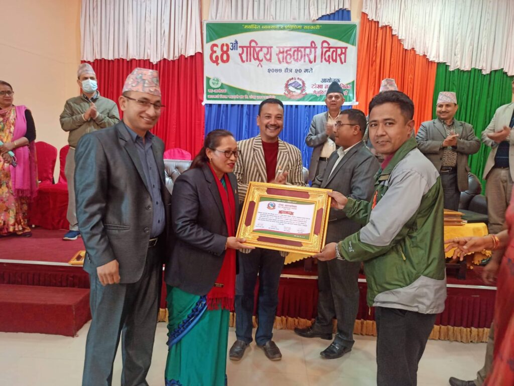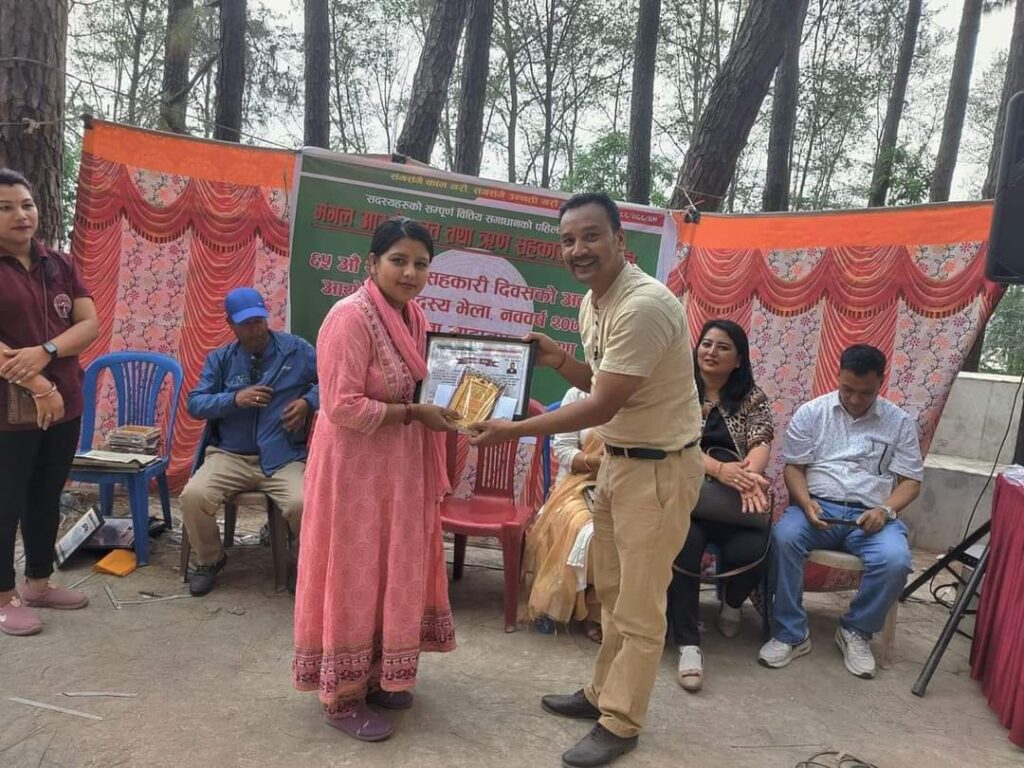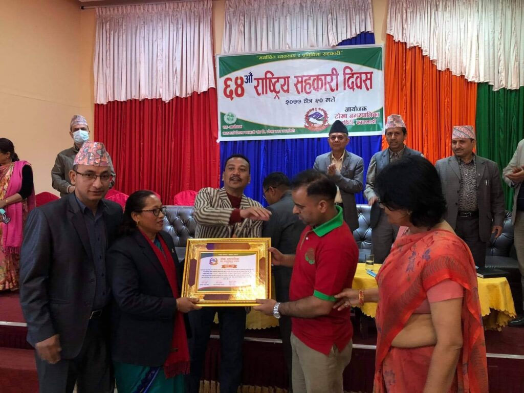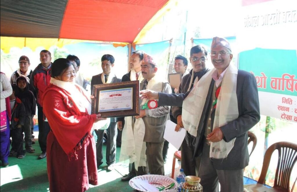Mangal Arati being awarded on the auspicious occasion of 64th National Co-operative Day by Tokha municipality for support towards “Tokha Covid Fund”