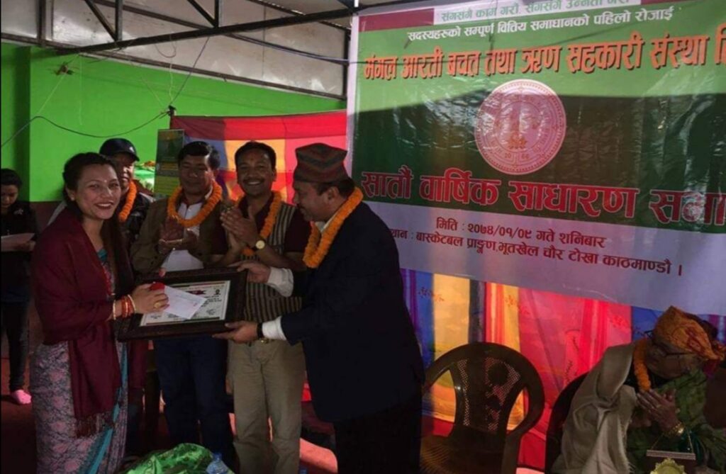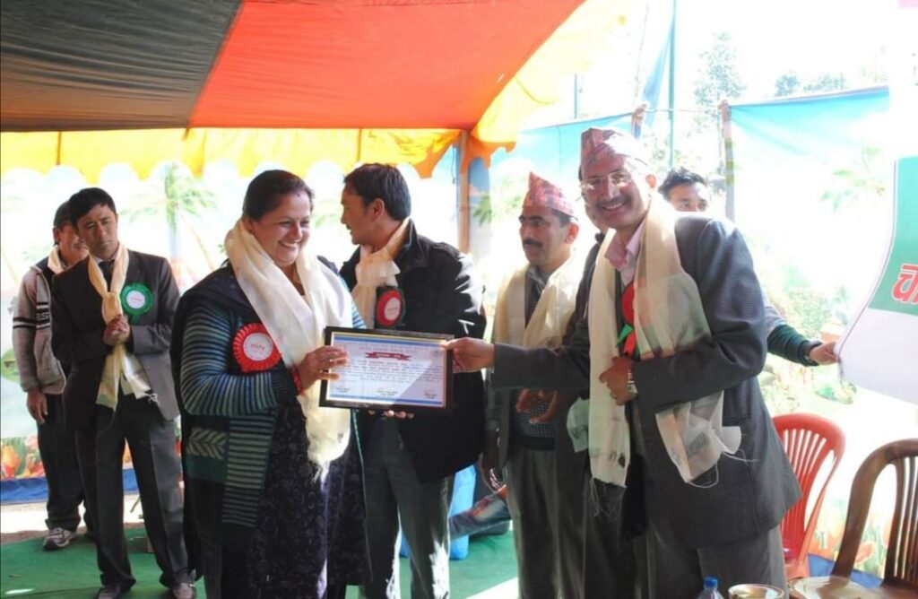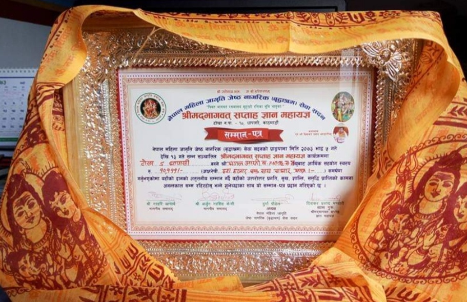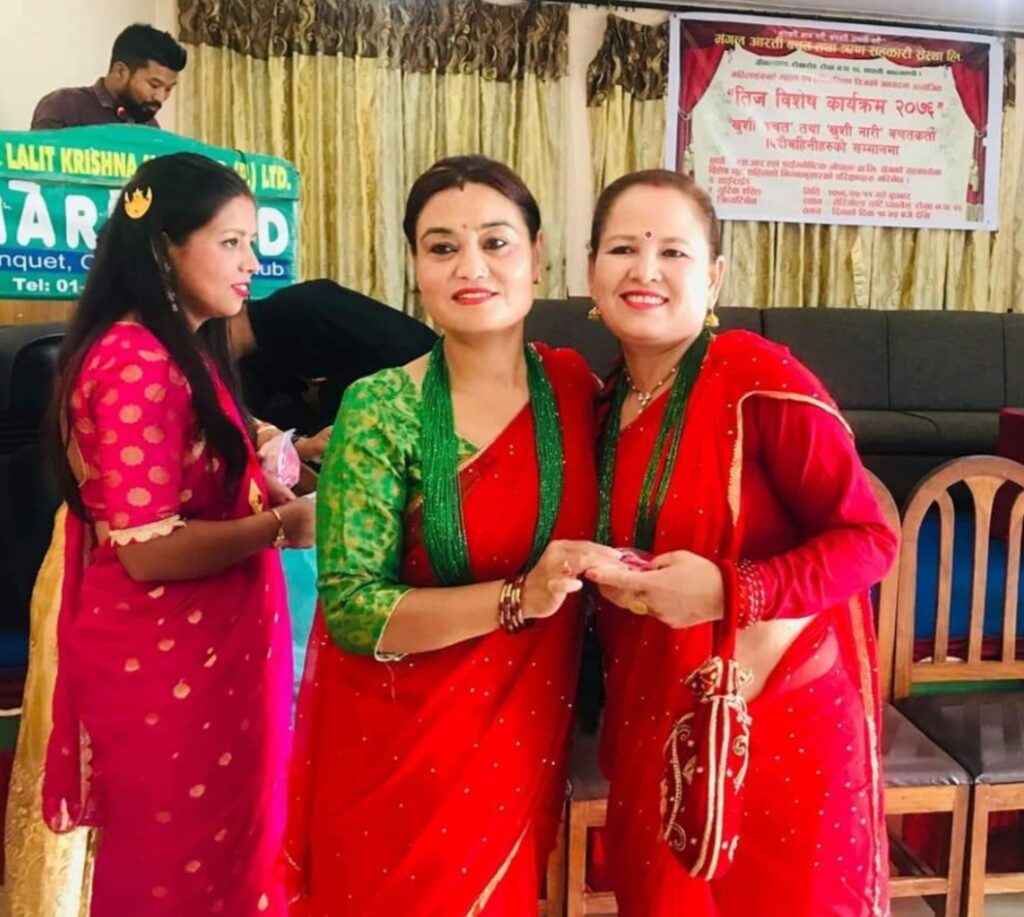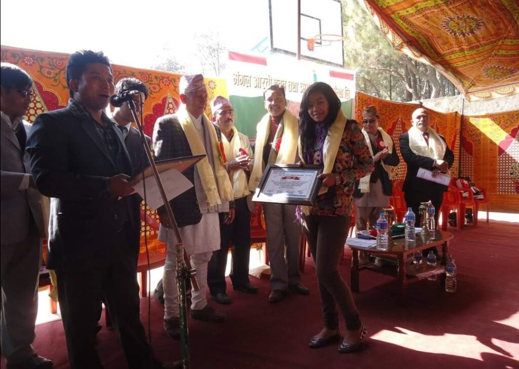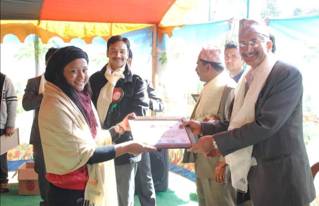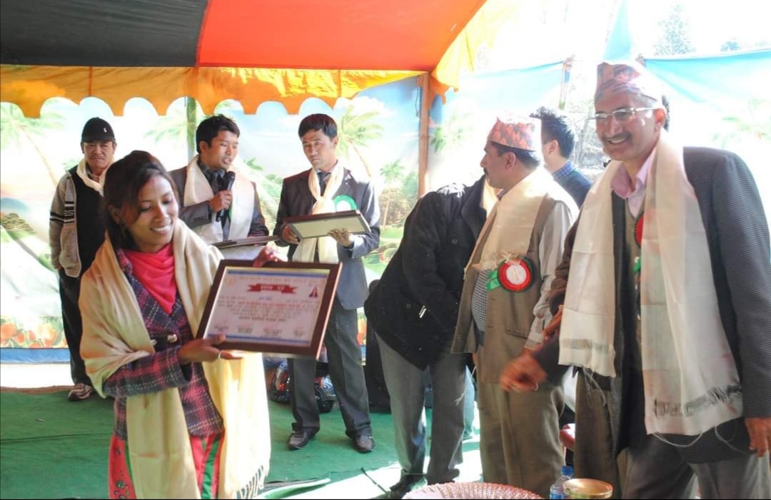 Mangal Arati being awarded on the auspicious occasion of 64th National Co-operative Day by Tokha municipality for support towards “Tokha Covid Fund”