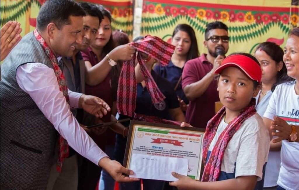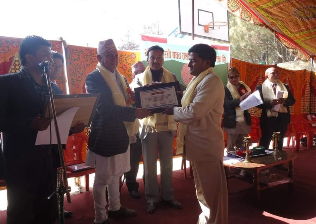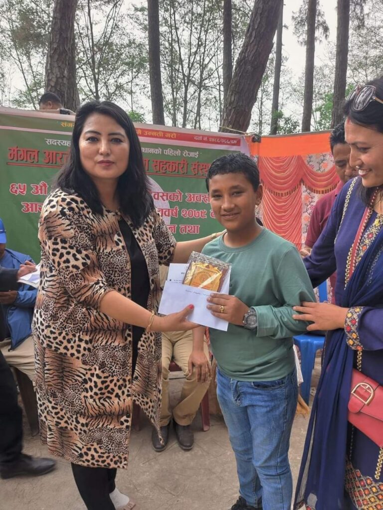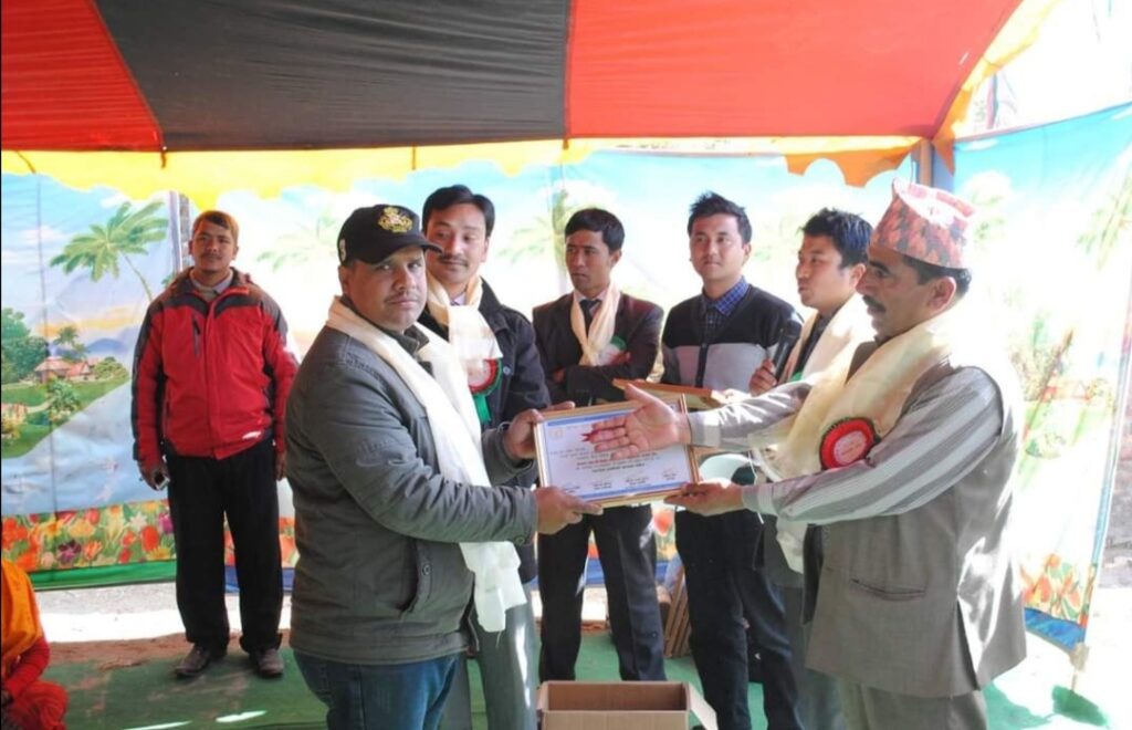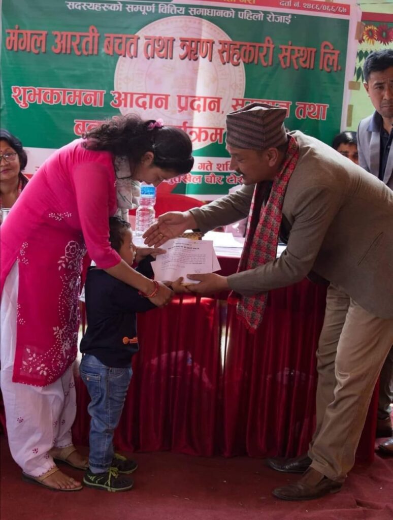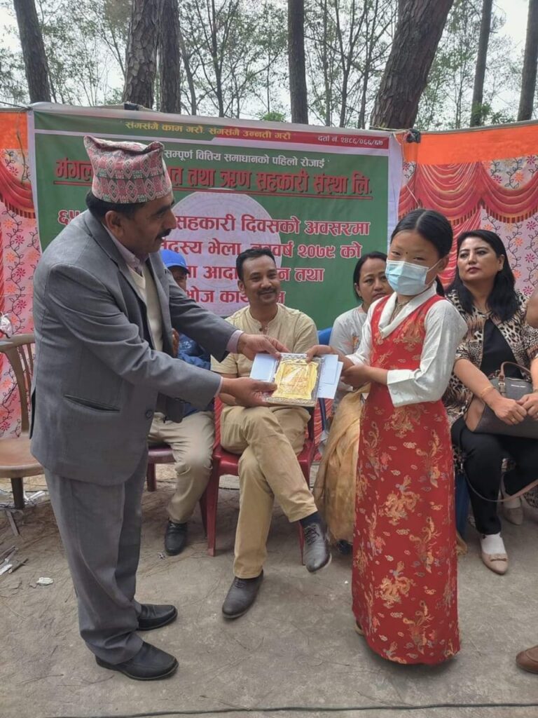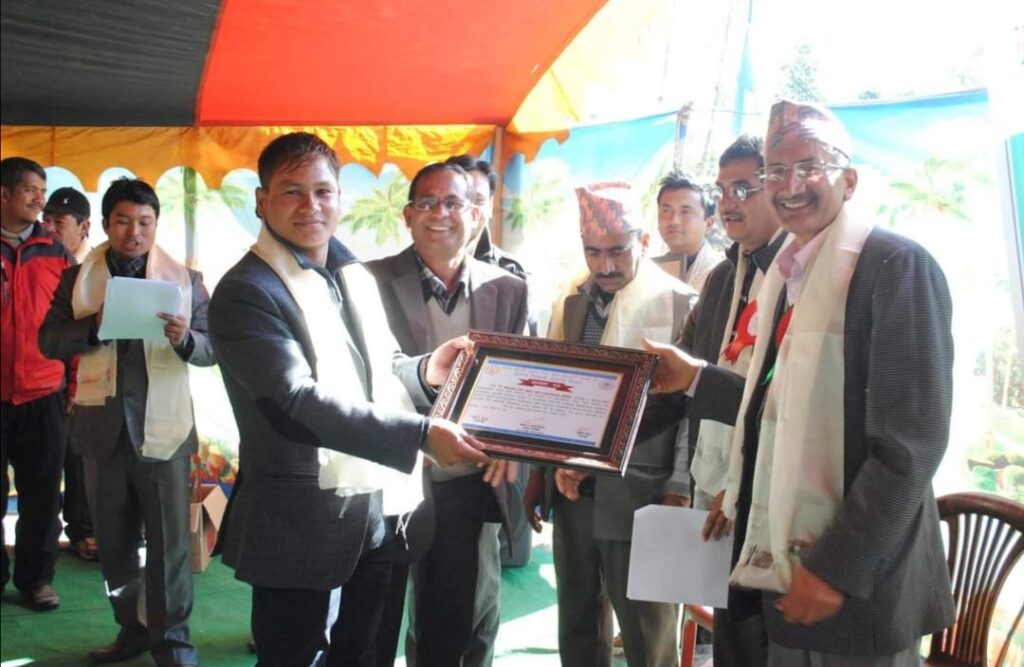 Mangal Arati being awarded on the auspicious occasion of 64th National Co-operative Day by Tokha municipality for support towards “Tokha Covid Fund”