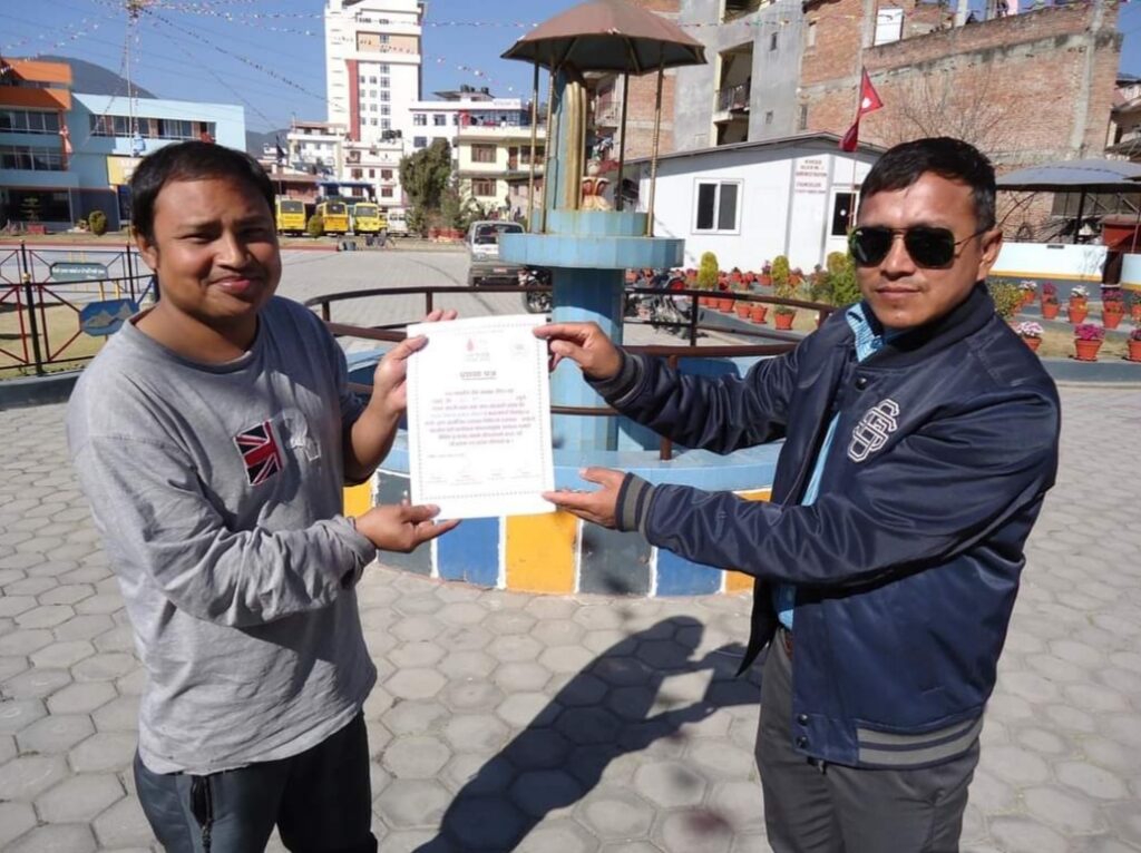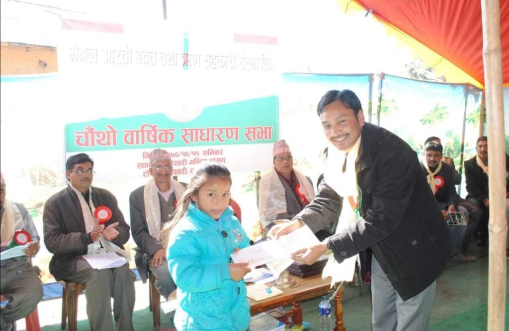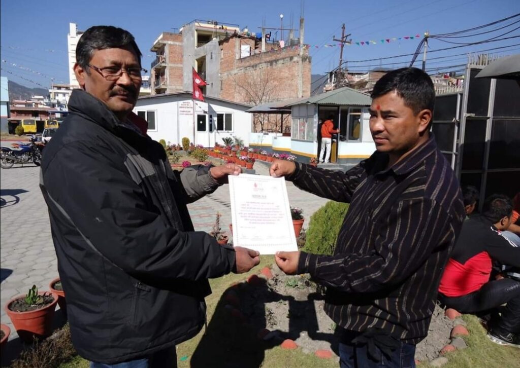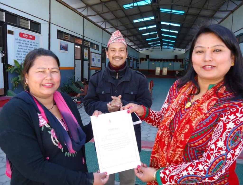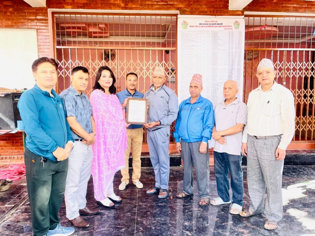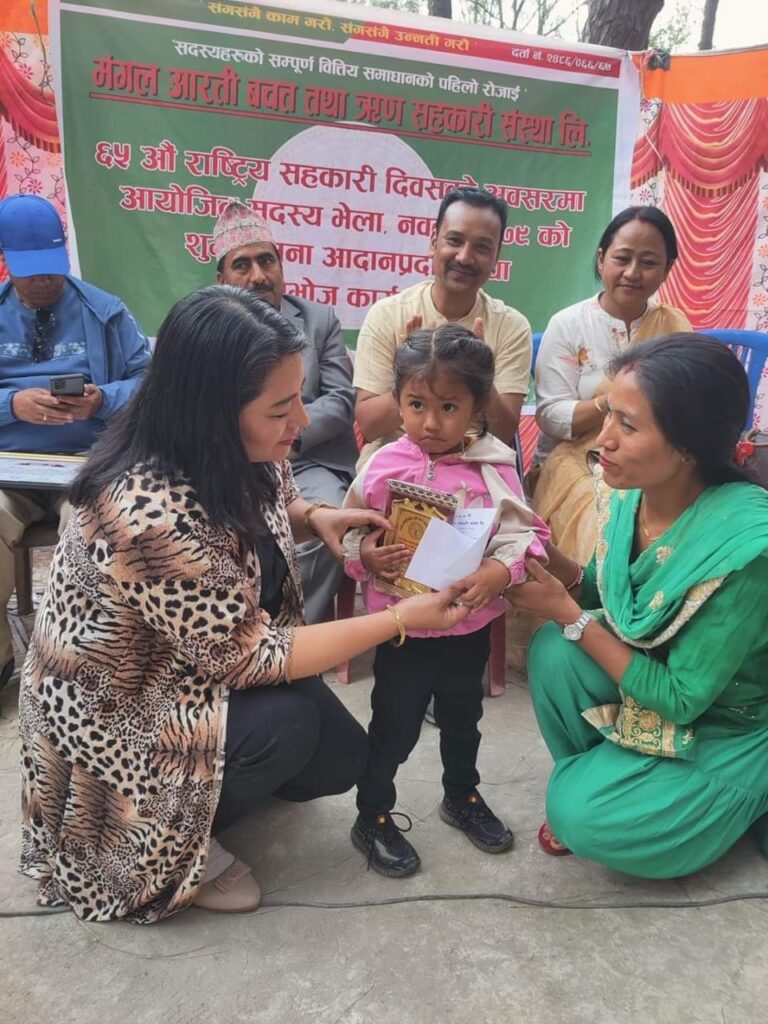 Mangal Arati being awarded on the auspicious occasion of 64th National Co-operative Day by Tokha municipality for support towards “Tokha Covid Fund”