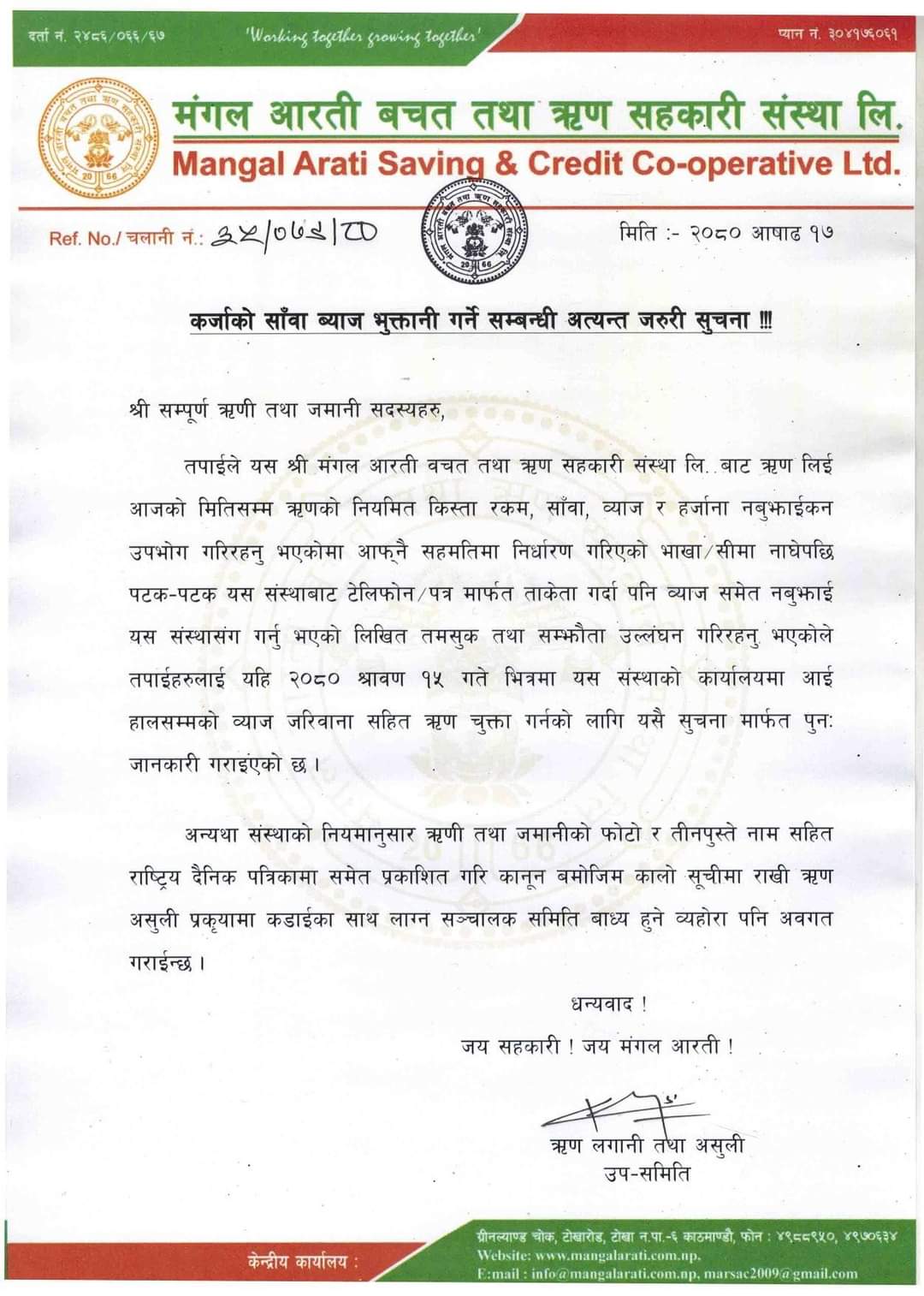 Loan Interest Payment Notice