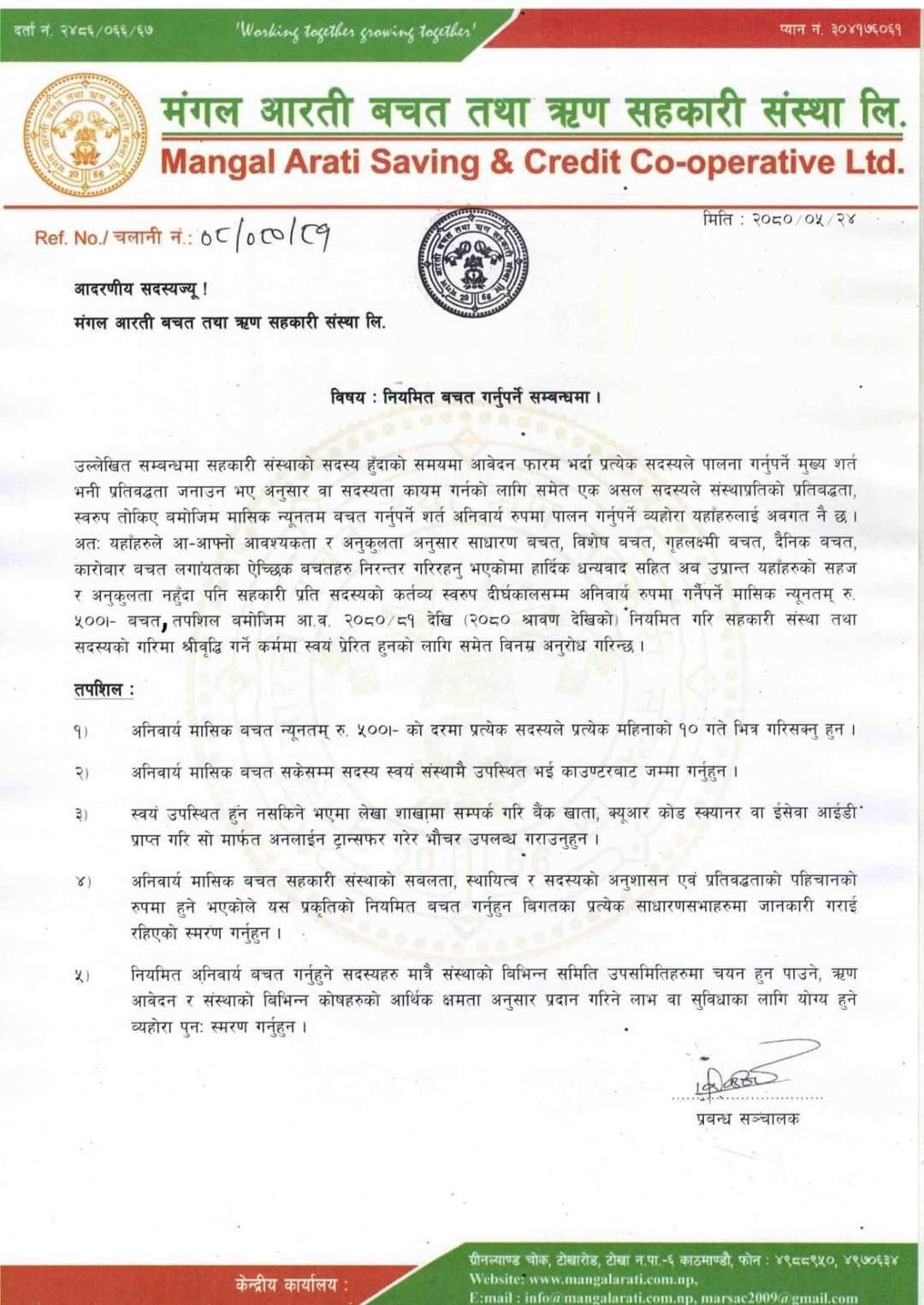 Regular Saving Notice